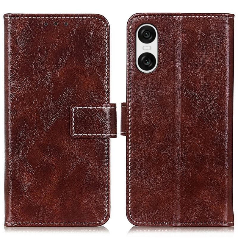 Θήκη τηλεφώνου δέρματος με οριζόντιο άνοιγμα για Sony Xperia 10 VI, με υφή Retro Crazy Horse (Μωβ)