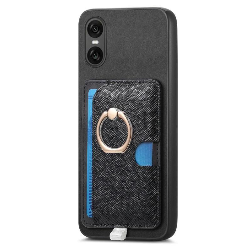 For Sony Xperia 10 VI Retro Cross Leather Ring Side Insert Card Bag MagSafe Phone Case(Black)