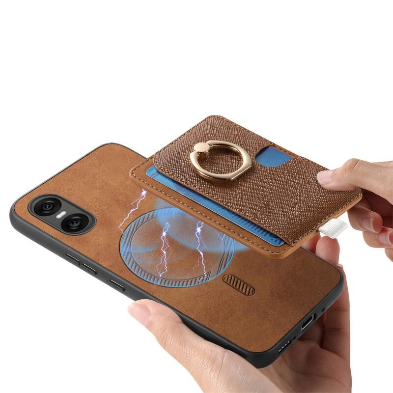 For Sony Xperia 10 VI Retro Cross Leather Ring Side Insert Card Bag MagSafe Phone Case(Brown)