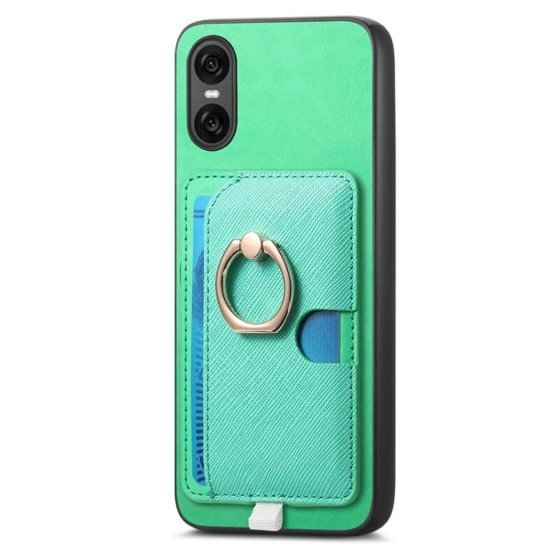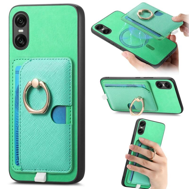 For Sony Xperia 10 VI Retro Cross Leather Ring Side Insert Card Bag MagSafe Phone Case(Green)