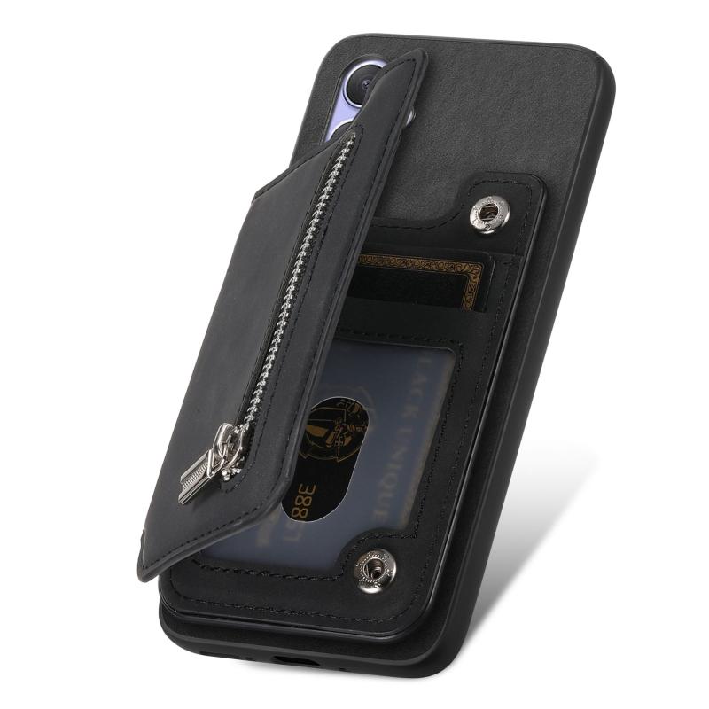 For Sony Xperia 10 VI Retro MagSafe Zipper Wallet Card Bag Back Phone Case(Black)
