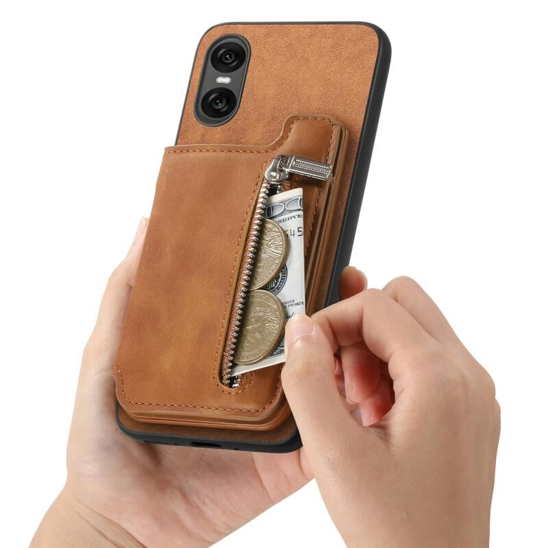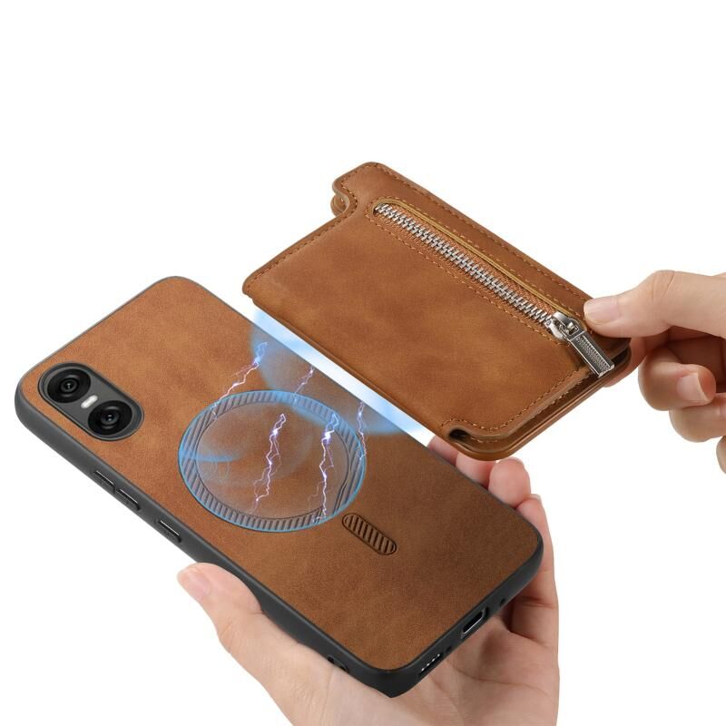 For Sony Xperia 10 VI Retro MagSafe Zipper Wallet Card Bag Back Phone Case(Brown)