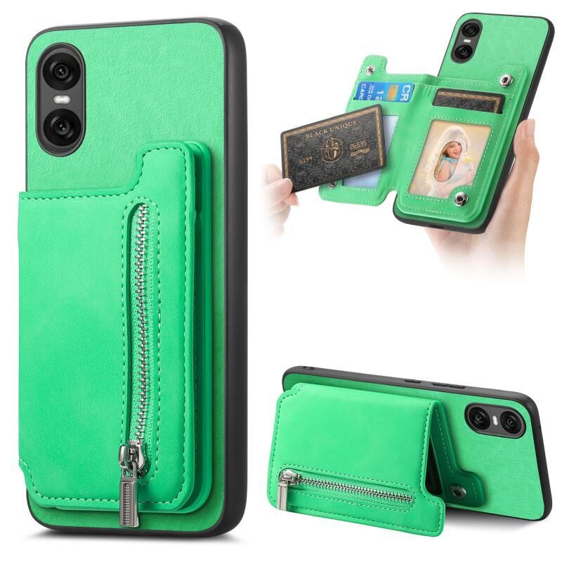 For Sony Xperia 10 VI Retro MagSafe Zipper Wallet Card Bag Back Phone Case(Green)