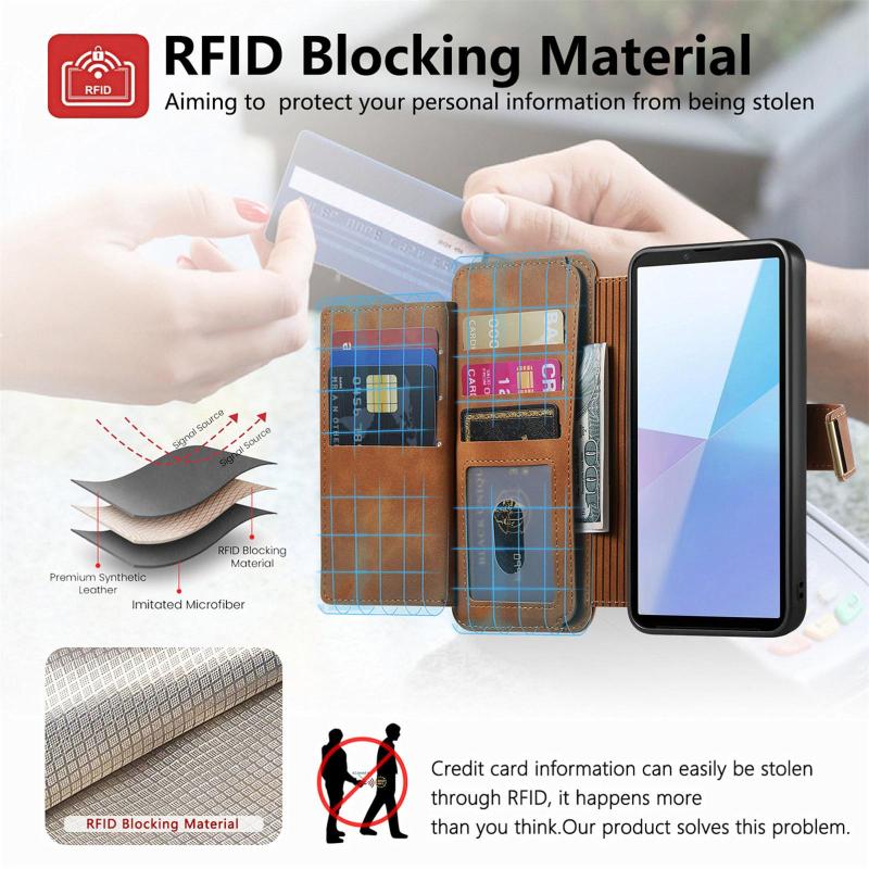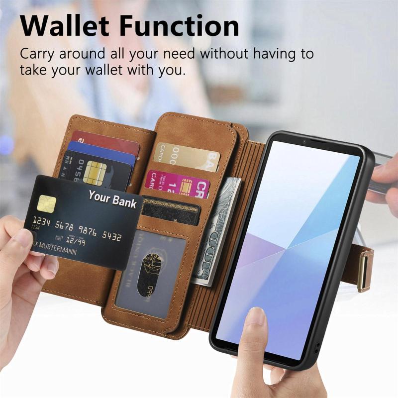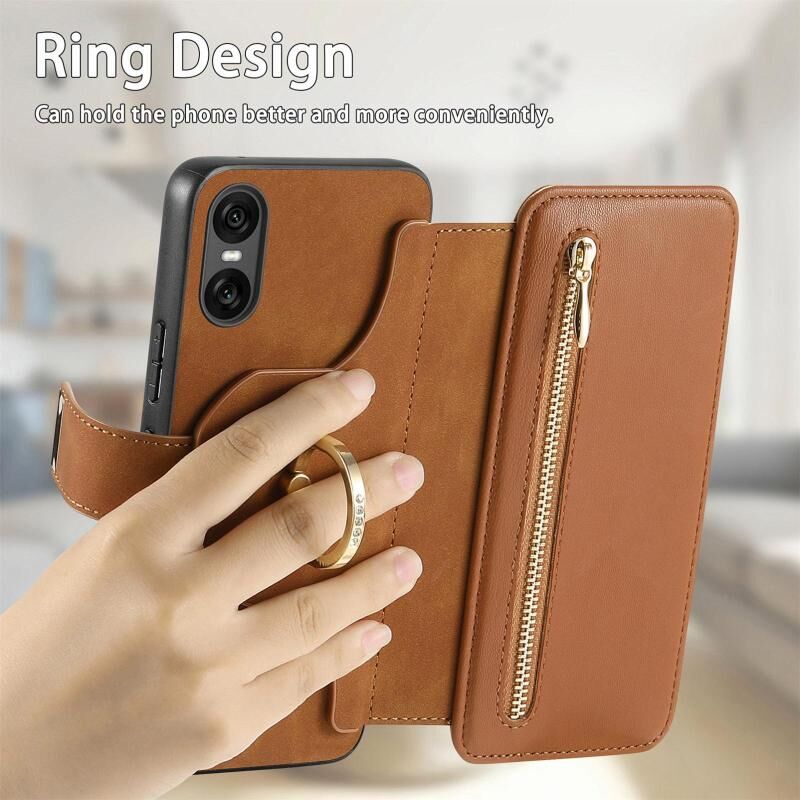 For Sony Xperia 10 VI Ring Zipper Wallet RFID Blocking MagSafe Leather Phone Case(Brown)