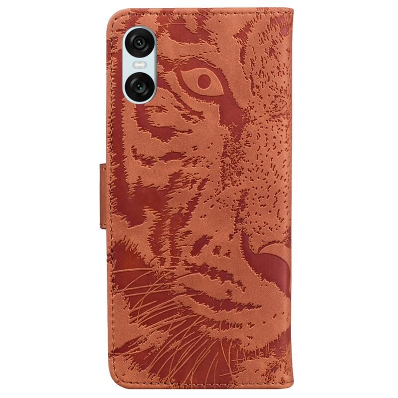 Θήκη τηλεφώνου από δέρμα με σχέδιο Tiger Embossing για Sony Xperia 10 VI (Κόκκινο)