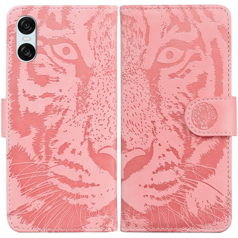 Θήκη τηλεφώνου από δέρμα με σχέδιο Tiger Embossing για Sony Xperia 10 VI (Κόκκινο)