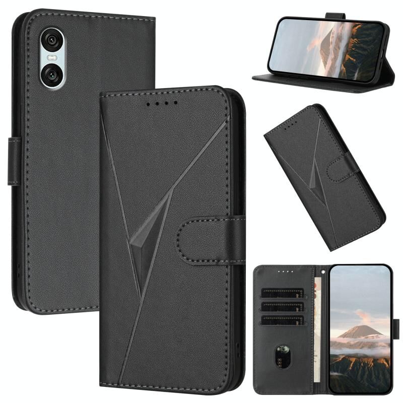 Για Sony Xperia 10 VI Τρίγωνο μοτίβο αγκράφα κούμπωμα δερμάτινη θήκη τηλεφώνου (μαύρο)