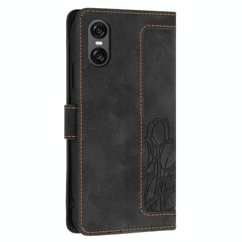 Θήκη τηλεφώνου από δέρμα με ανάγλυφα τουλίπες για Sony Xperia 10 VI με κορδόνι (Πράσινο)