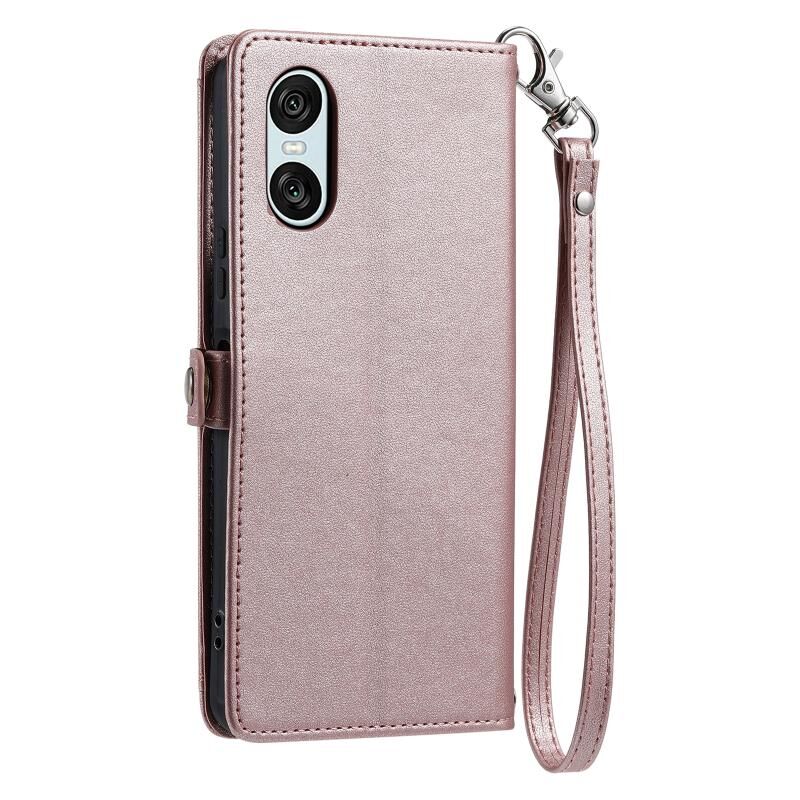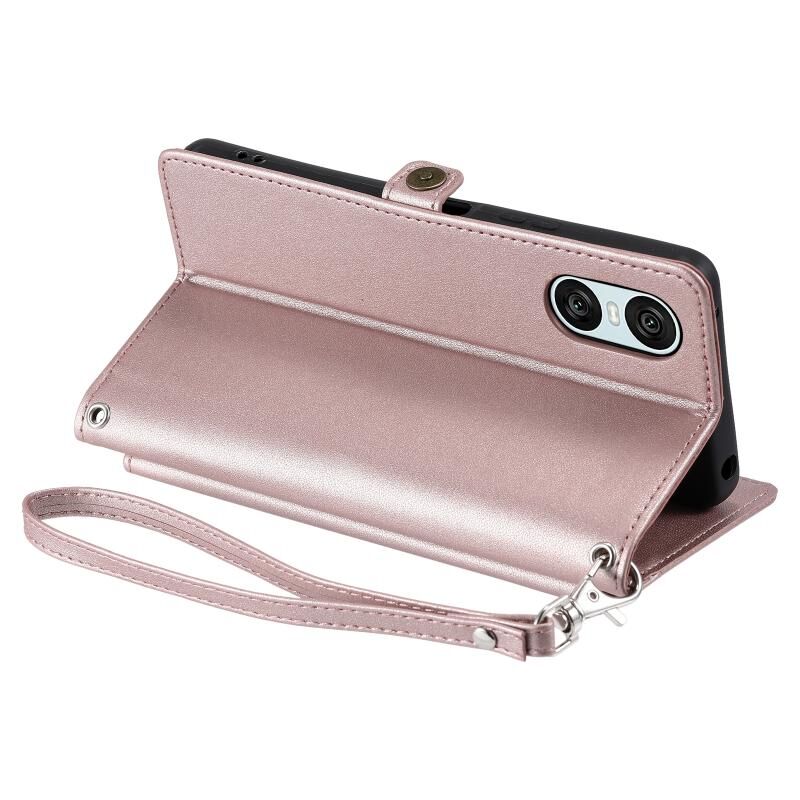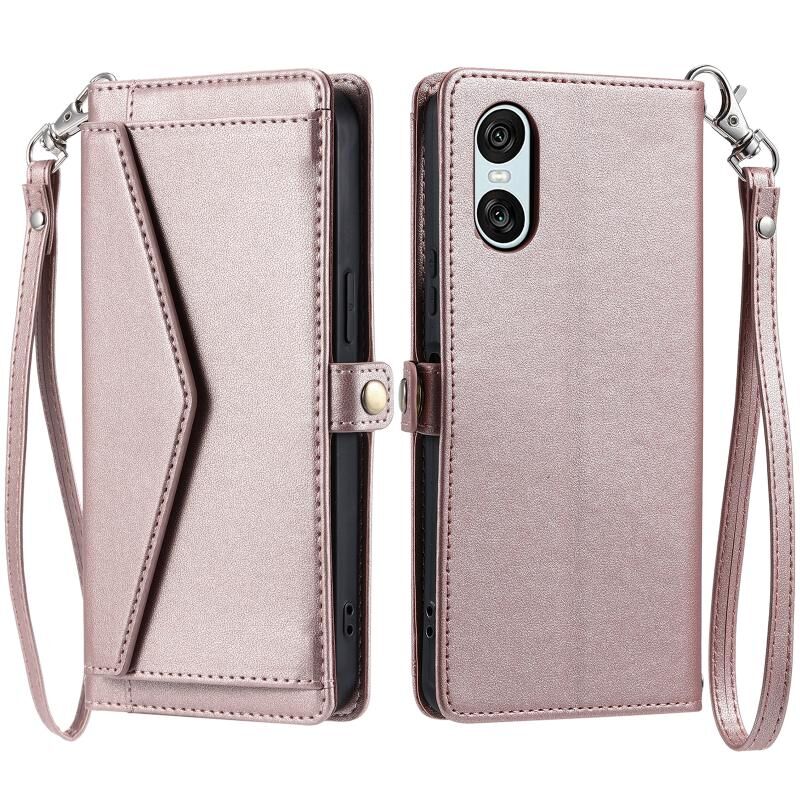 Για Sony Xperia 10 VI Πορτοφόλι Multi-card Slot Δερμάτινη θήκη τηλεφώνου με κορδόνι (ροζ χρυσό)