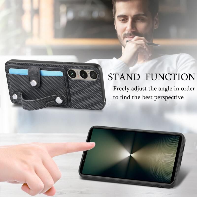 Για το Sony Xperia 10 VI Wristband Kickstand κάρτα πορτοφόλι πίσω κάλυμμα τηλεφώνου υπόθεση με εργαλείο μαχαίρι (μαύρο)