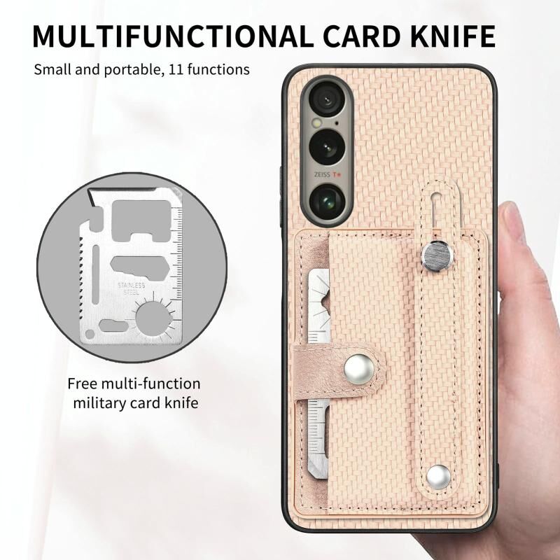 Για Sony Xperia 10 VI Wristband Kickstand κάρτα πορτοφόλι πίσω κάλυψη υπόθεση τηλεφώνου με εργαλείο μαχαίρι (χακί)