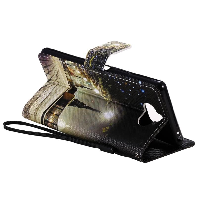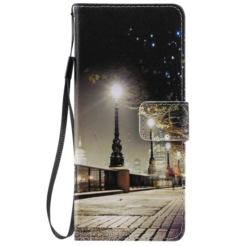 Θήκη δέρματος οριζόντιας αναδίπλωσης για Sony Xperia 20 με βάση & υποδοχή κάρτας & κορδόνι (Αστικό Τοπίο)