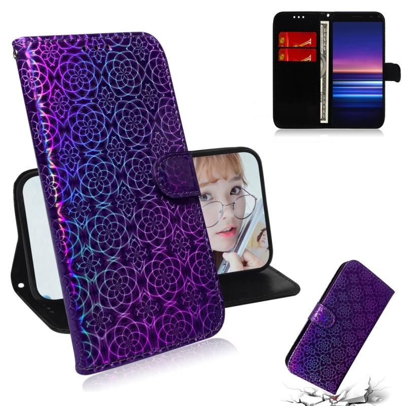 Για Sony Xperia 20 Αμιγές χρώμα πολύχρωμο μαγνητικό πόρπη οριζόντια Flip PU δέρμα υπόθεση με κάτοχο & υποδοχές για κάρτες & πορτοφόλι & κορδόνι (μωβ)