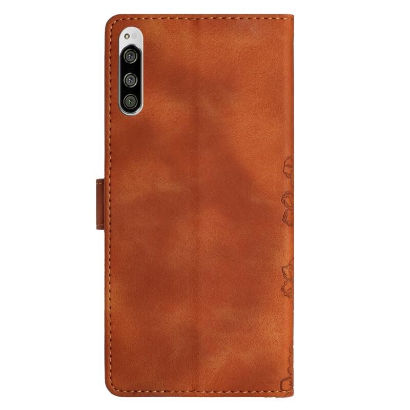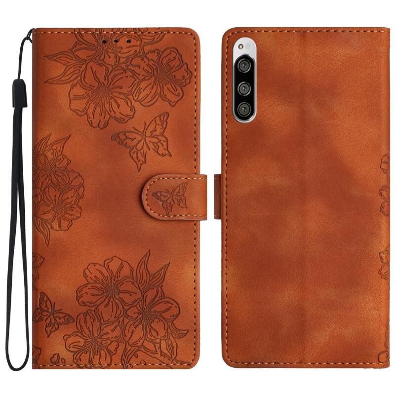 Θήκη τηλεφώνου για Sony Xperia 5 Cherry Blossom Butterfly Skin Feel Embossed PU (Κόκκινη)