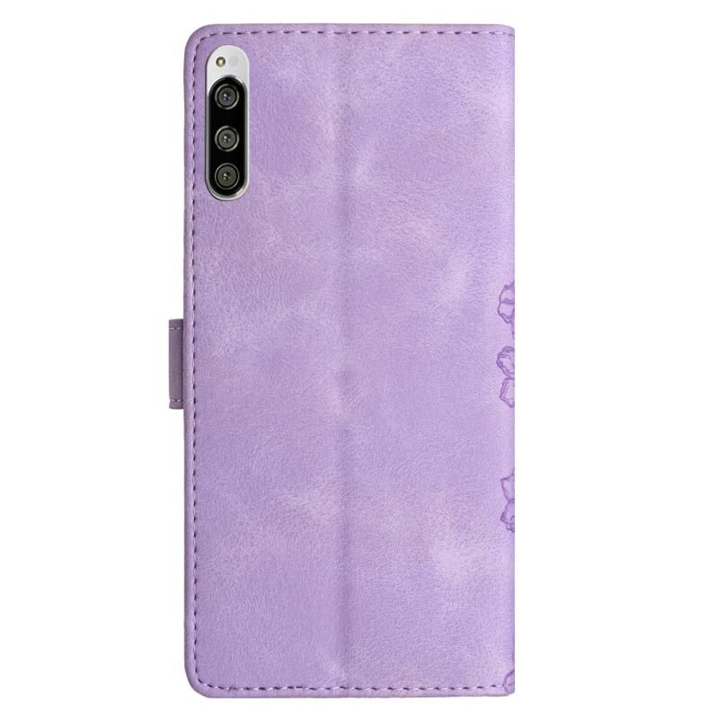 Θήκη τηλεφώνου για Sony Xperia 5 Cherry Blossom Butterfly Skin Feel Embossed PU (Κόκκινη)
