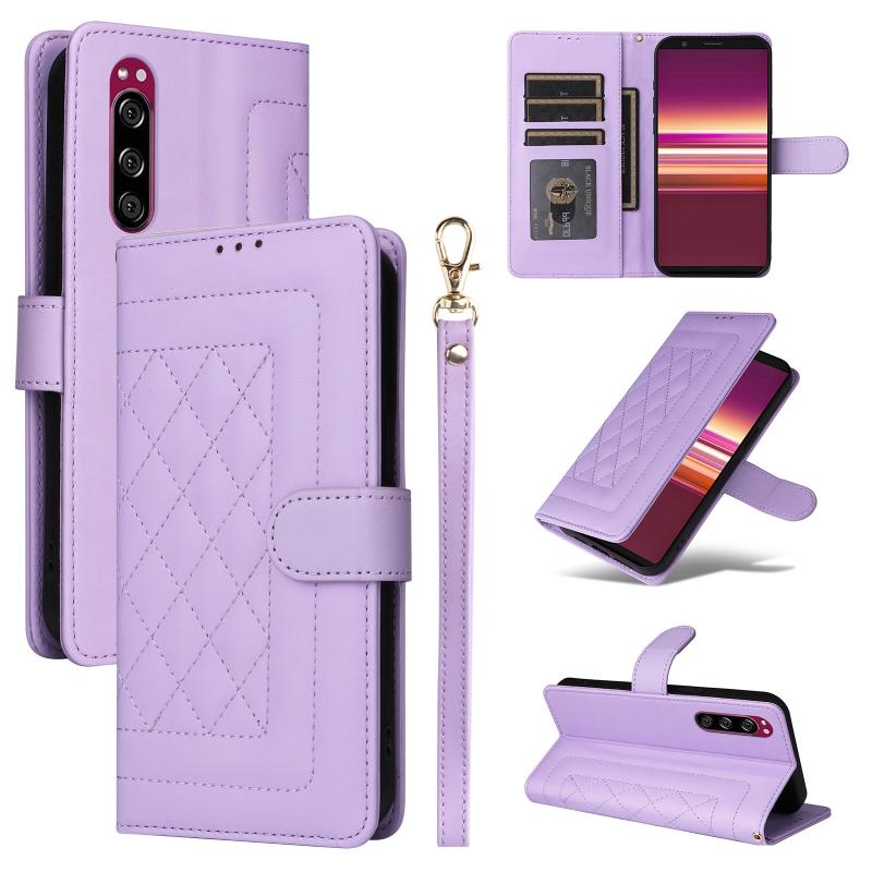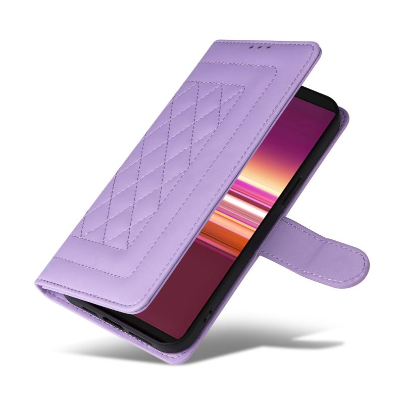 For Sony Xperia 5 Diamond Lattice Leather Flip Phone Case(Light Purple)