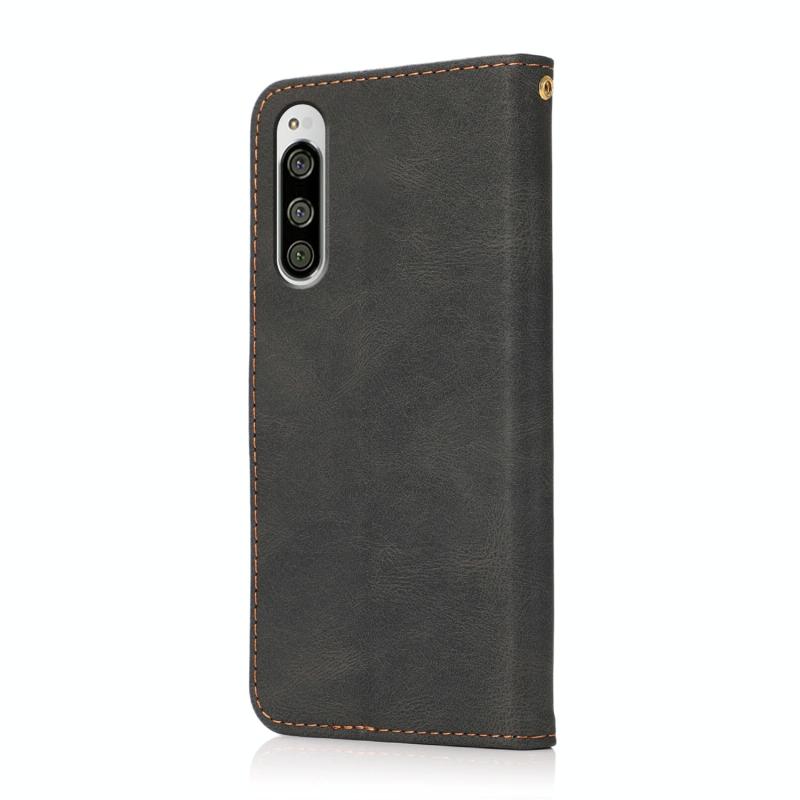 Θήκη τηλεφώνου δερμάτινη με διπλή ραφή για Sony Xperia 5 (Μαύρο Καφέ)