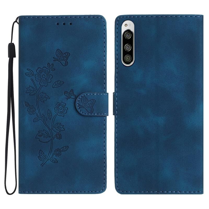 Θήκη τηλεφώνου δερμάτινη με ανάγλυφο σχέδιο πεταλούδας λουλουδιών για Sony Xperia 5 (Μαύρο)