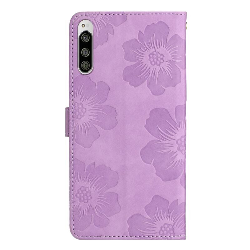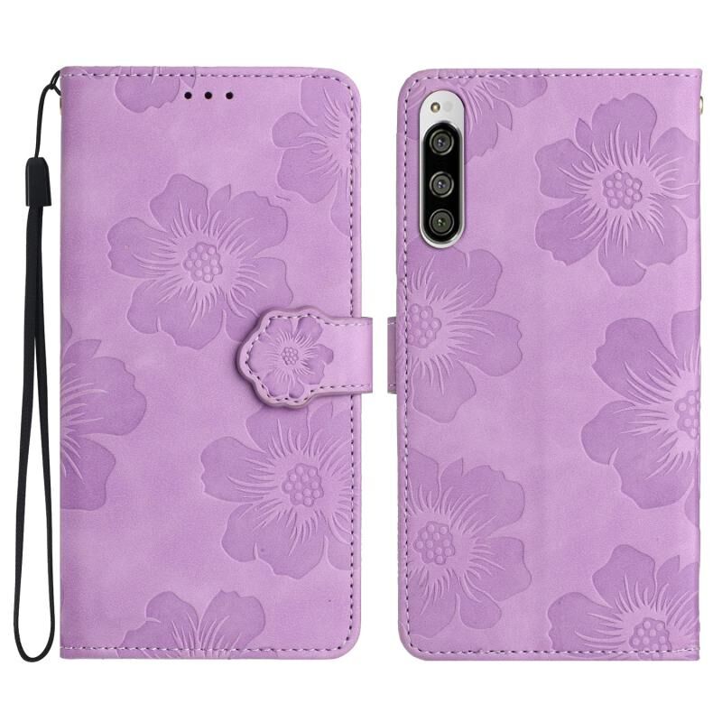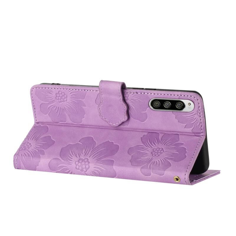 Για Sony Xperia 5 λουλούδι ανάγλυφο μοτίβο δερμάτινη θήκη τηλεφώνου (μωβ)