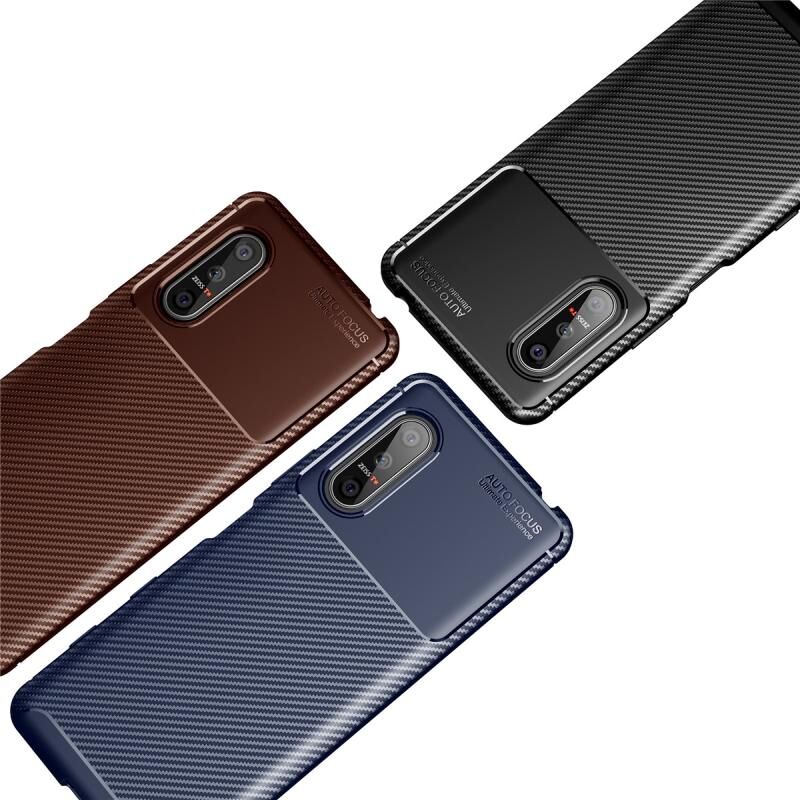 Θήκη για Sony Xperia 5 II, ανθεκτική στις κρούσεις, από TPU με υφή ανθρακονήματος (Μπλε)