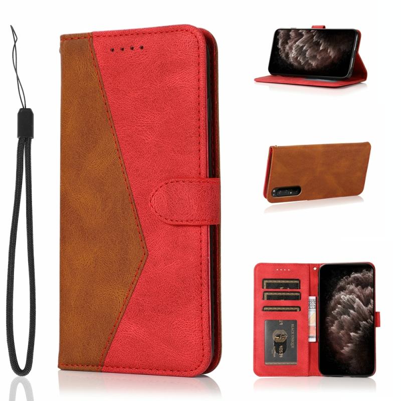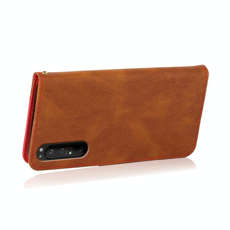 Θήκη τηλεφώνου δερμάτινη με διπλή ραφή για Sony Xperia 5 II (Καφέ-Κόκκινο)