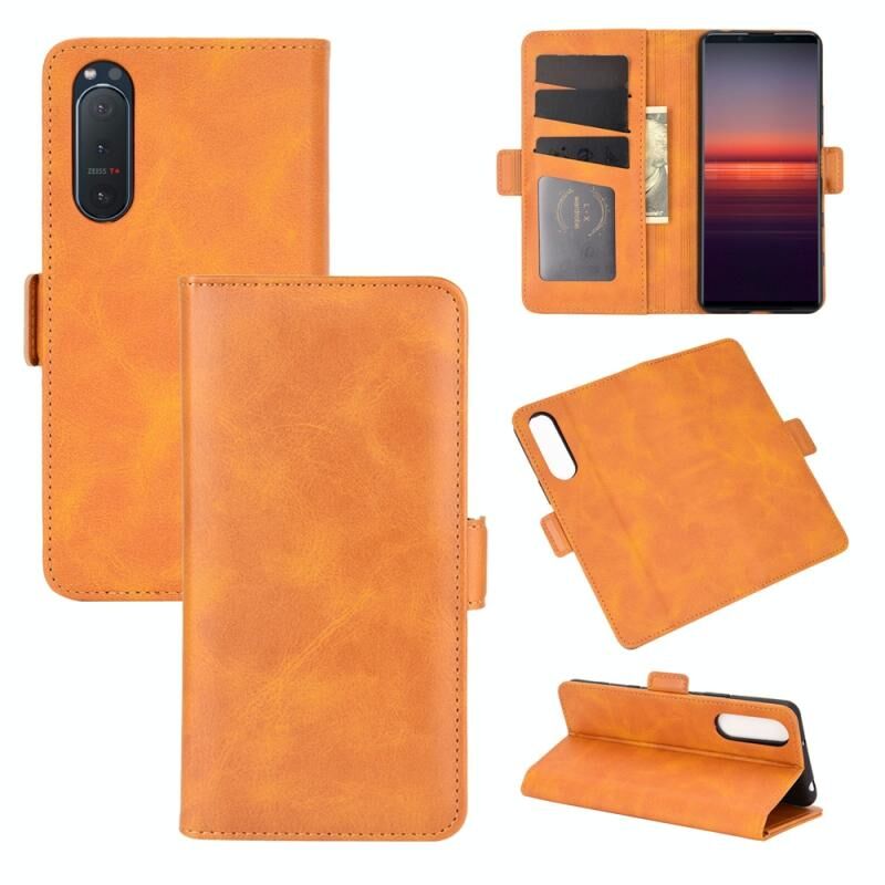 Για Sony Xperia 5 II Διπλής όψης μαγνητική αγκράφα οριζόντια Flip δερμάτινη θήκη με θήκη για κάρτες & υποδοχές & πορτοφόλι (κίτρινο)