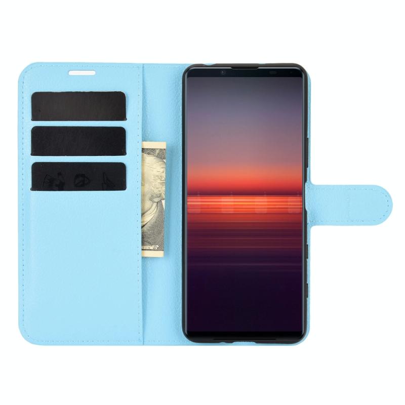 For Sony Xperia 5 II Litchi Texture Horizontal Flip Protective Case with Holder & Card Slots & Wallet(Blue)
