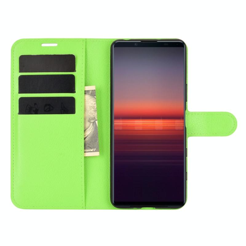 For Sony Xperia 5 II Litchi Texture Horizontal Flip Protective Case with Holder & Card Slots & Wallet(Green)