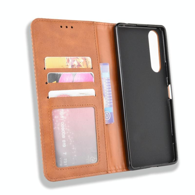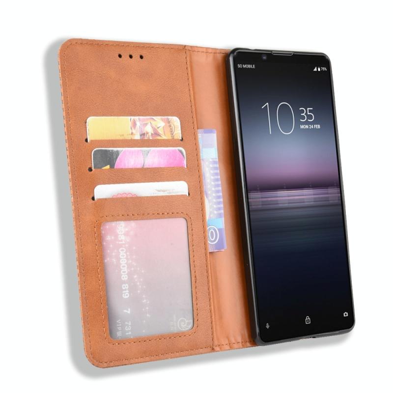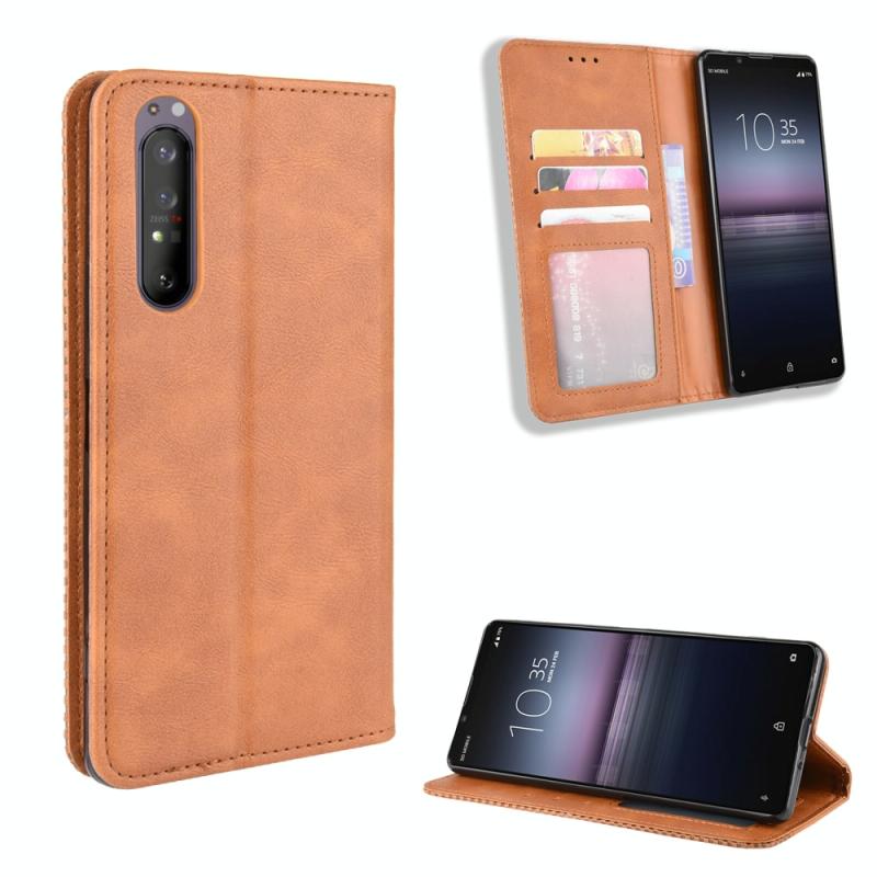 For Sony Xperia 5 II Magnetic Buckle Retro Crazy Horse Texture Horizontal Flip Leather Case with Holder & Card Slots & Photo Frame(Brown)