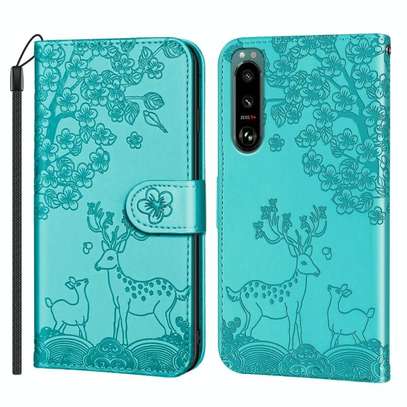 For Sony Xperia 5 II Sika Deer Embossing Pattern Horizontal Flip PU Leather Case with Holder & Card Slot & Wallet & Photo Frame(Green)