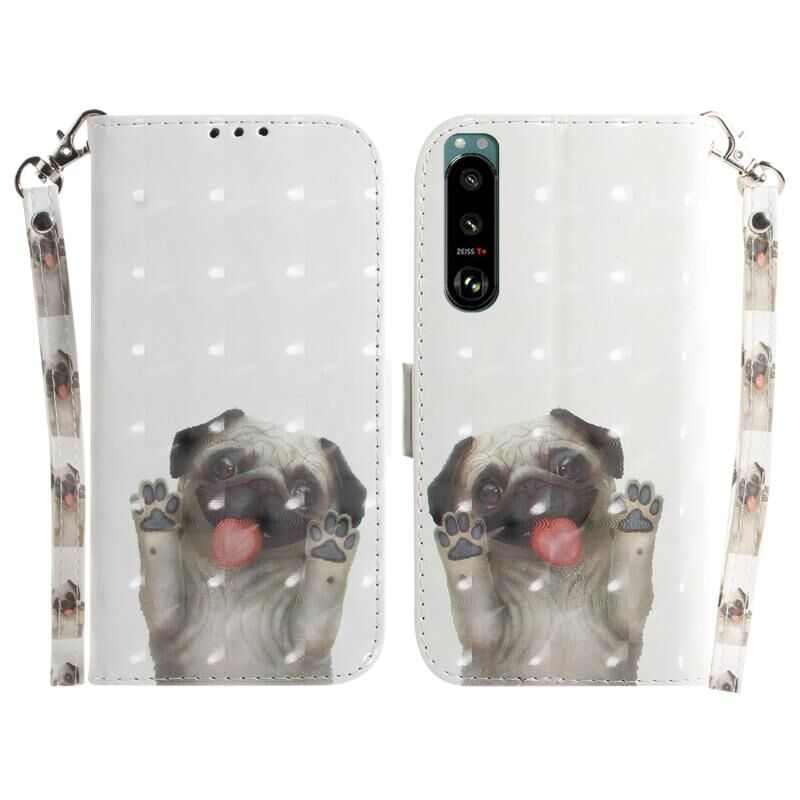 Θήκη τηλεφώνου δέρμα κατακόρυφης αναδίπλωσης με έγχρωμο 3D σχέδιο για Sony Xperia 5 III (Pug)
