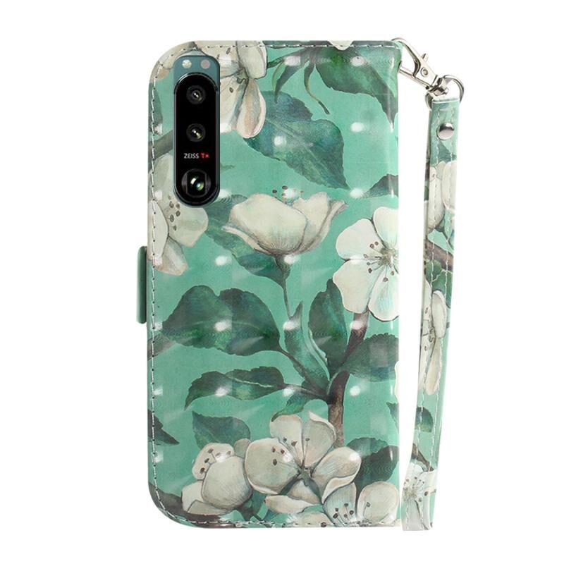 Θήκη τηλεφώνου δέρμα κατακόρυφης αναδίπλωσης 3D με έγχρωμα σχέδια για Sony Xperia 5 III (Ακουαρέλα Λουλούδι)