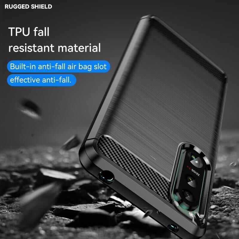 Για Sony Xperia 5 III βουρτσισμένη υφή Carbon Fiber TPU υπόθεση τηλεφώνου (μαύρο)