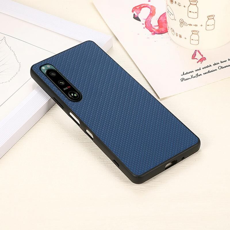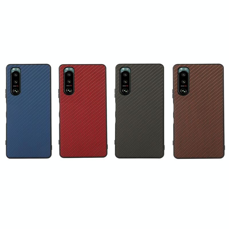 For Sony Xperia 5 III Carbon Fiber Skin PU + PC + TPU Shockprof Protective Case(Blue)