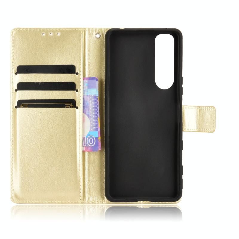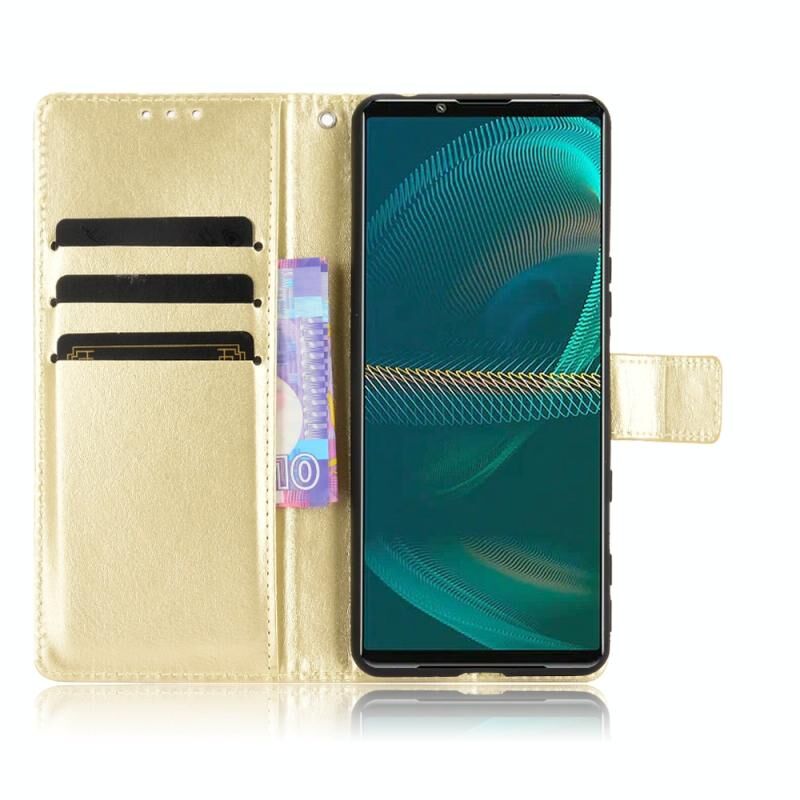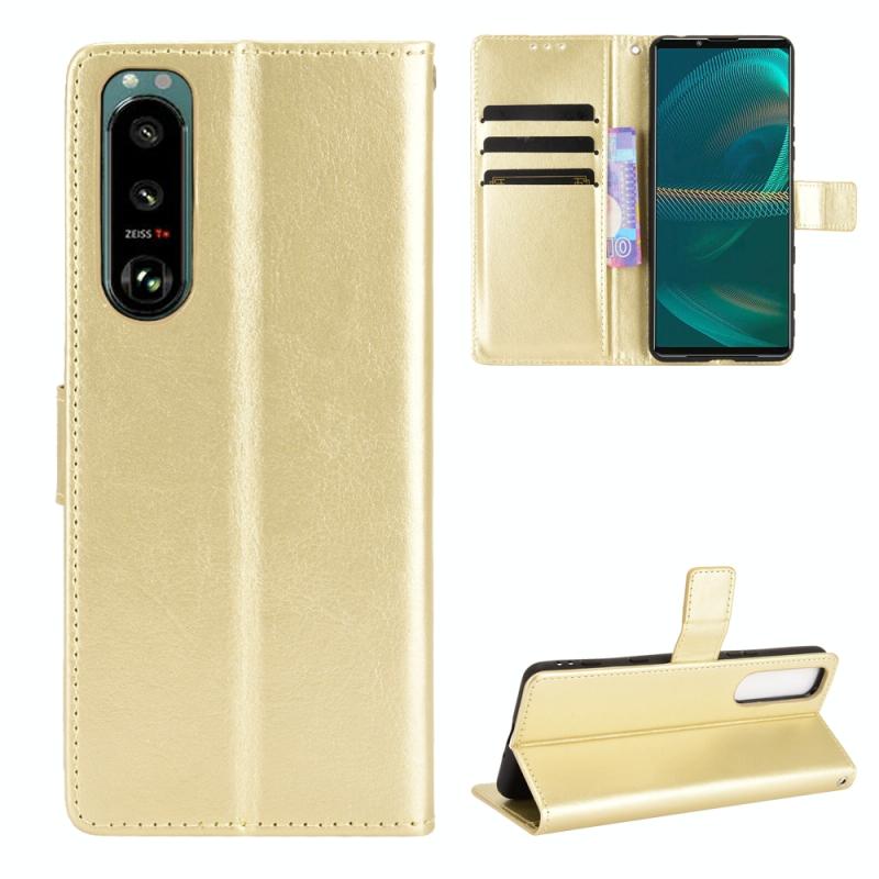 For Sony Xperia 5 III Crazy Horse Texture Horizontal Flip Leather Case with Holder & Card Slots & Lanyard(Gold)