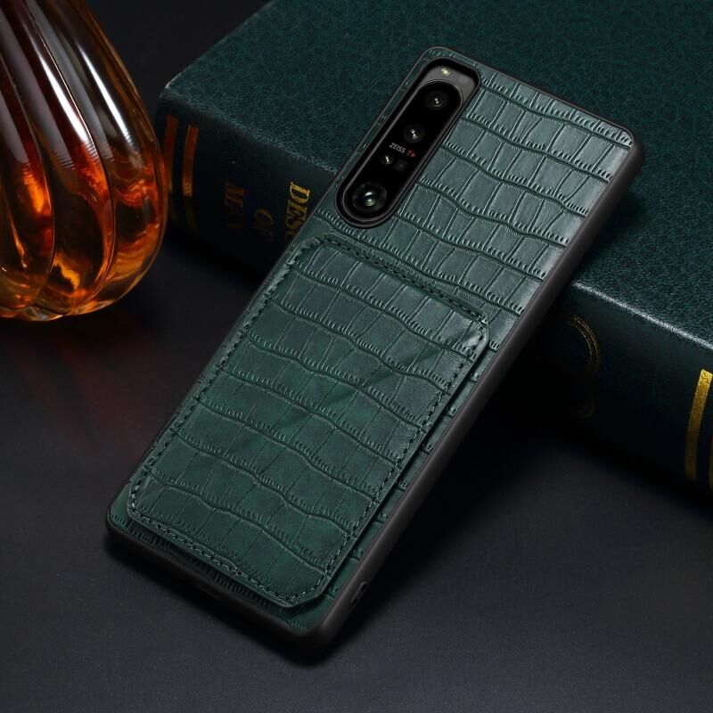 Θήκη τηλεφώνου για Sony Xperia 5 III Denior, απομίμηση δέρματος κροκόδειλου με βάση στήριξης (Πράσινο) (Denior)