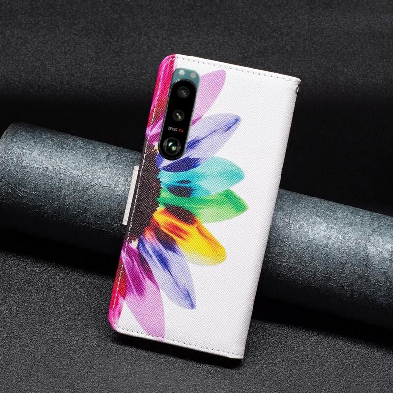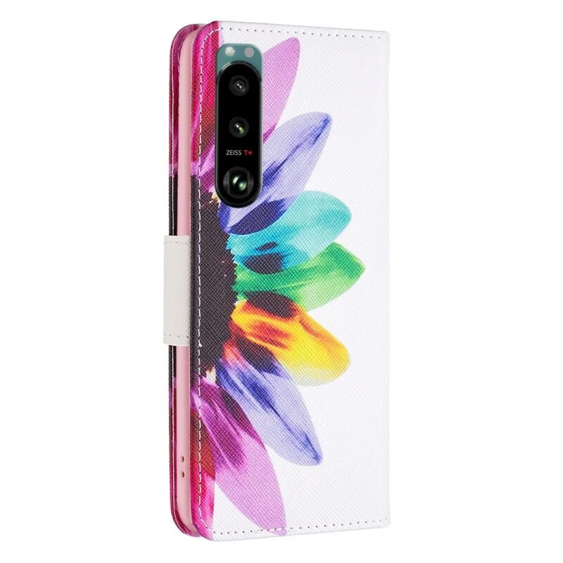 Θήκη τηλεφώνου από δέρμα με σχέδιο για Sony Xperia 5 III (Ηλιάνθος)