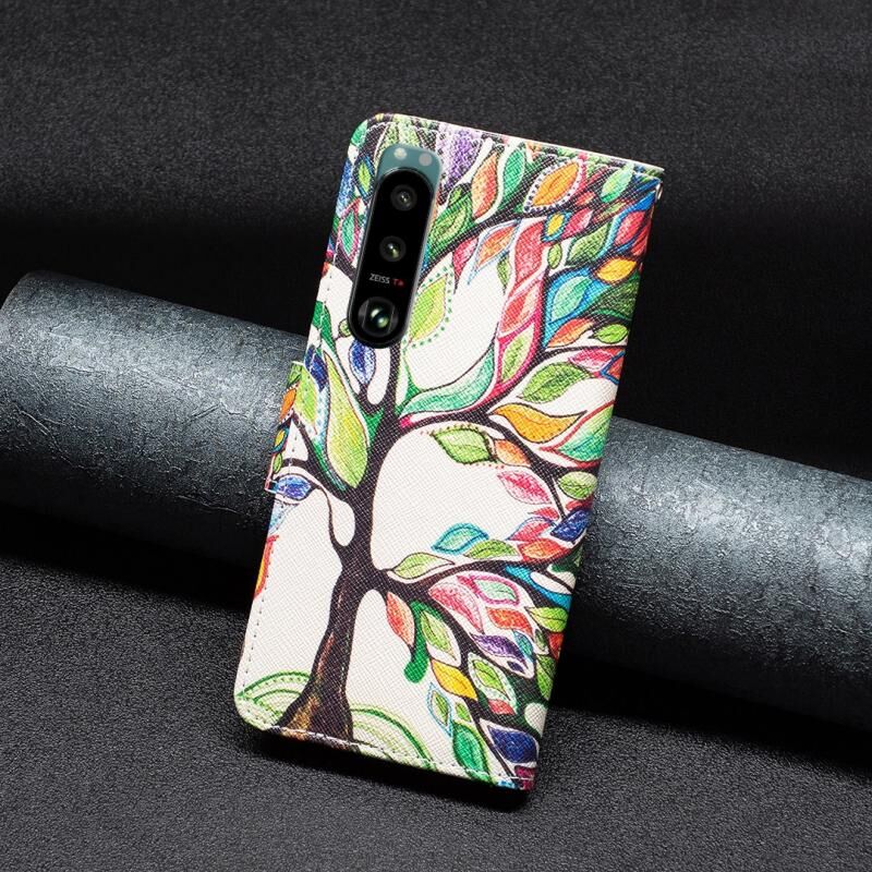 Θήκη τηλεφώνου από δέρμα με σχέδιο για Sony Xperia 5 III (Δέντρο Ζωής)
