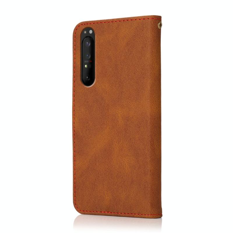 Θήκη τηλεφώνου από δέρμα με διπλή ραφή για Sony Xperia 5 III (Καφέ-Κόκκινο)