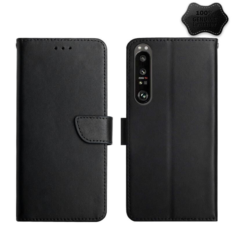 Θήκη Flip από Γνήσιο Δέρμα για Sony Xperia 5 III, Ανθεκτική στα Δακτυλικά Αποτυπώματα (Μαύρο)