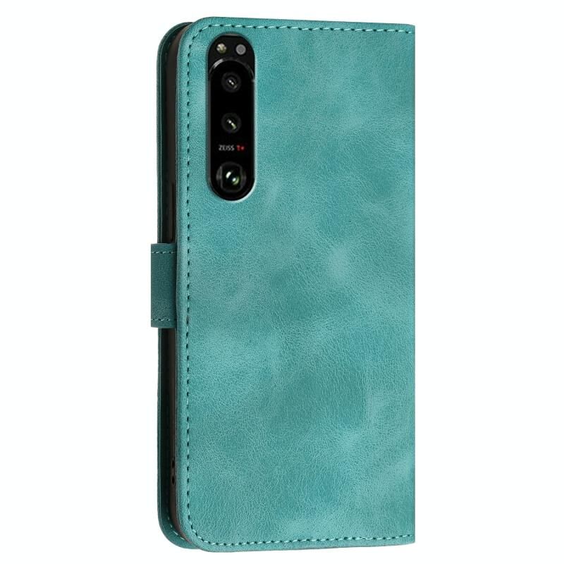 Θήκη τηλεφώνου από δέρμα με σχέδιο Grid Butterfly σε ανάγλυφο για Sony Xperia 5 III, με λουρί (Μαύρο)