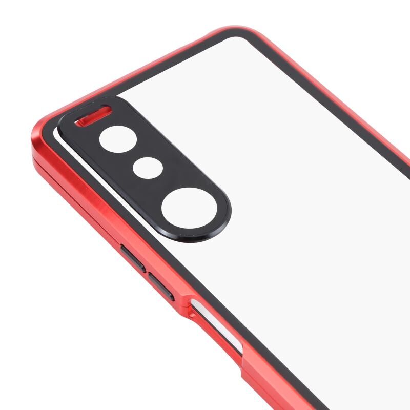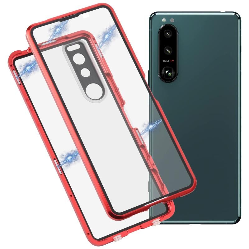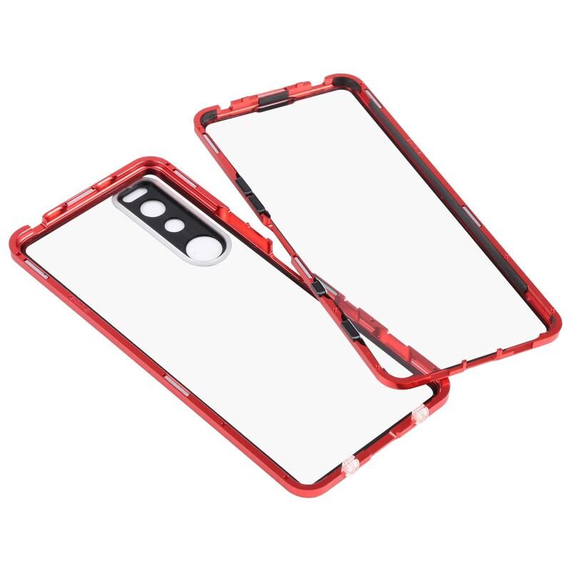 Για Sony Xperia 5 III HD Μαγνητική θήκη τηλεφώνου από μέταλλο μετριασμένο γυαλί (κόκκινο)