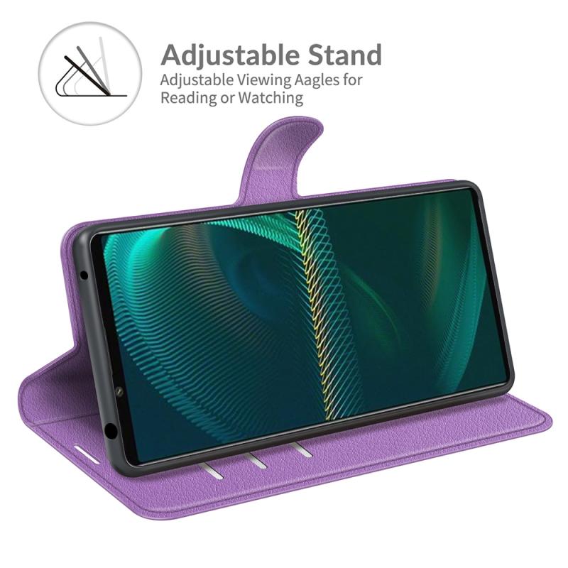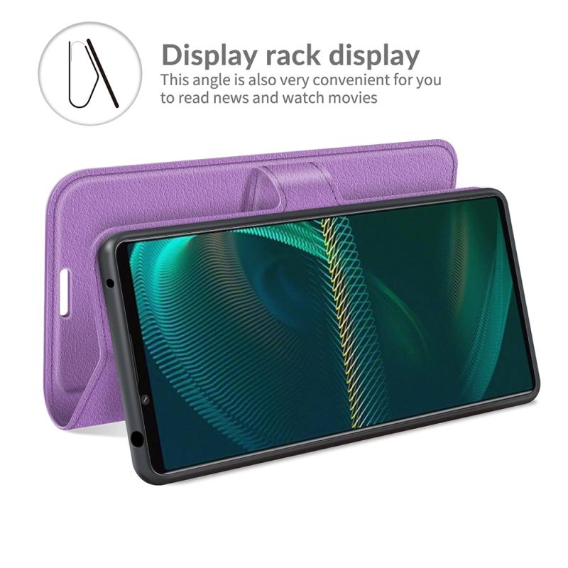 For Sony Xperia 5 III Litchi Texture Horizontal Flip Protective Case with Holder & Card Slots & Wallet(Purple)