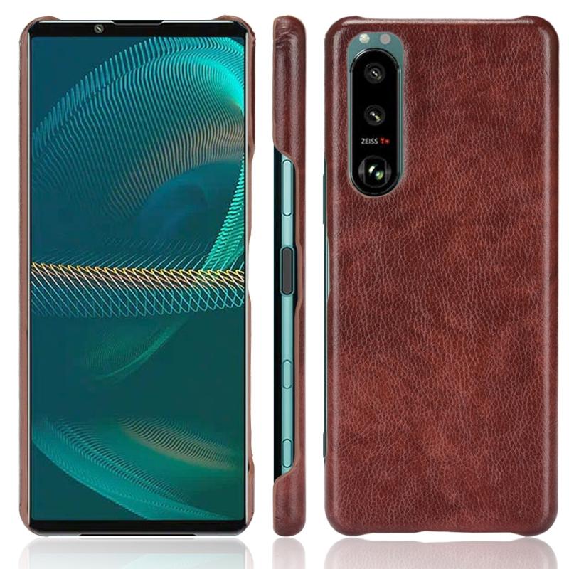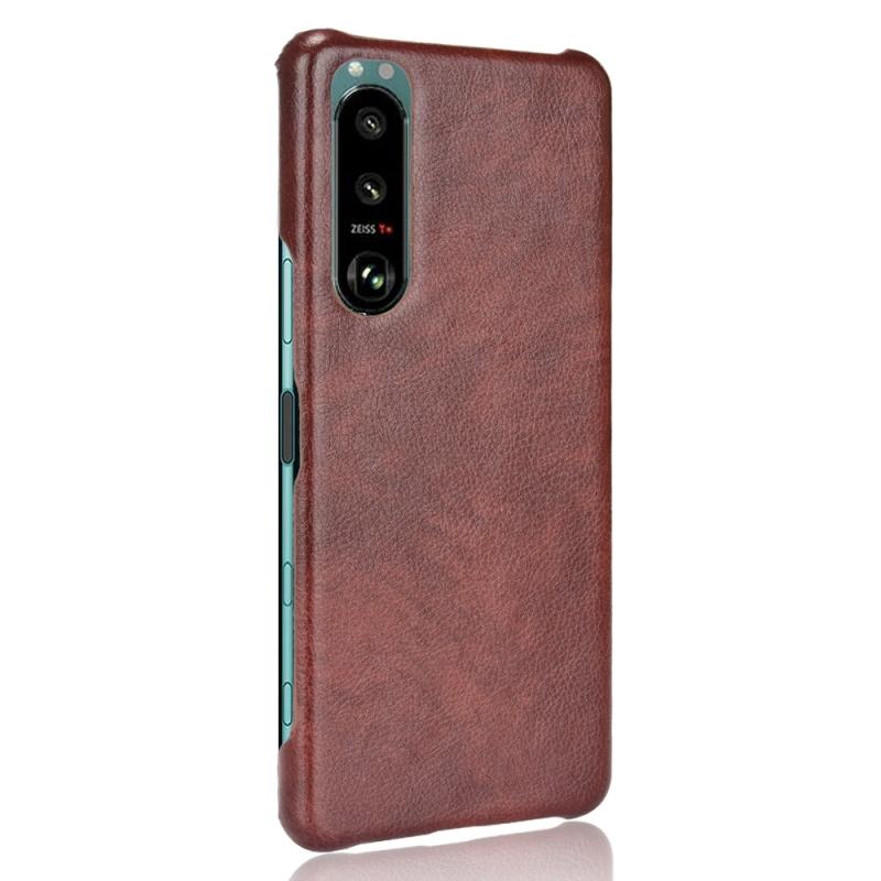 Θήκη κινητού τηλεφώνου Sony Xperia 5 III από πολυανθρακικό + PU με υφή δέρματος λitchi (Καφέ)
