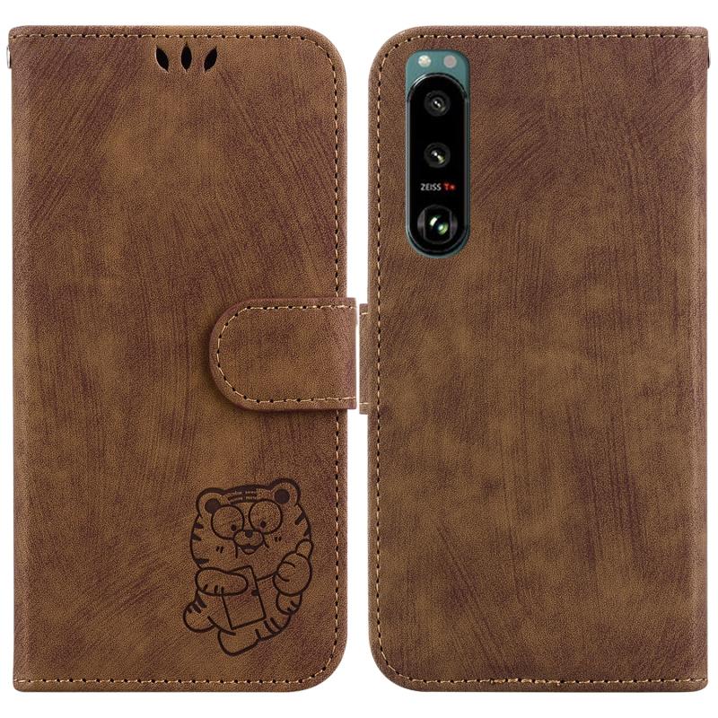 For Sony Xperia 5 III Little Tiger Embossed Leather Phone Case(Brown)