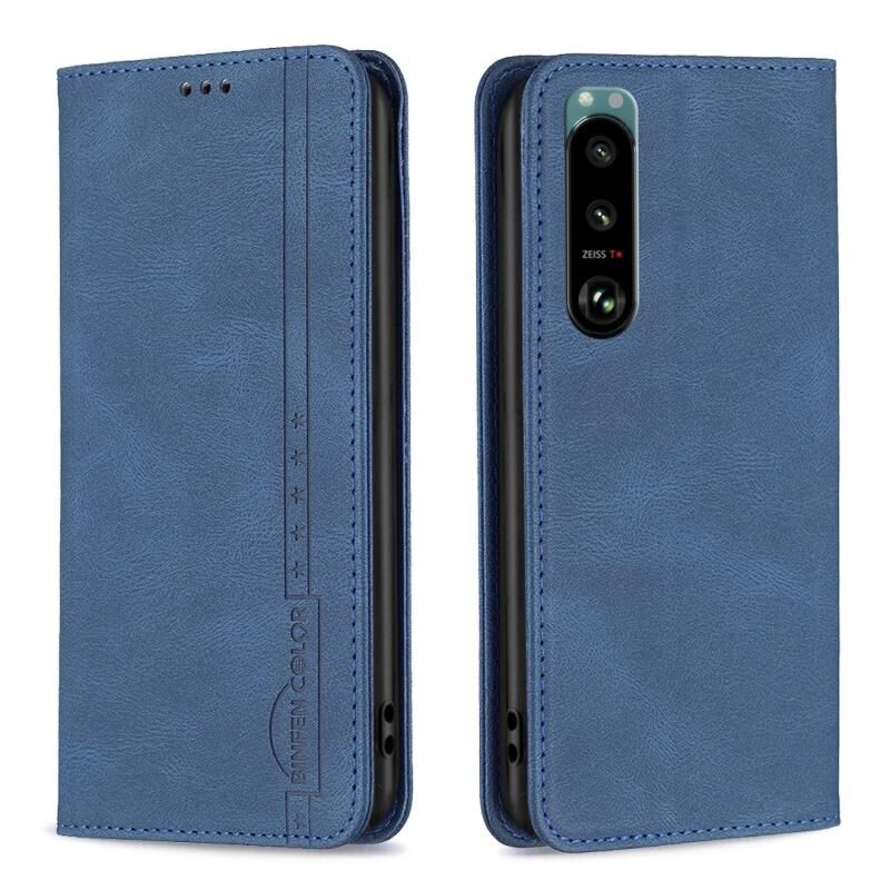 Για Sony Xperia 5 III Μαγνητικό RFID μπλοκάρισμα Anti-Theft Δερμάτινη θήκη τηλεφώνου (μπλε)