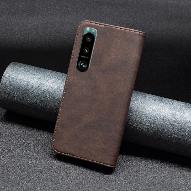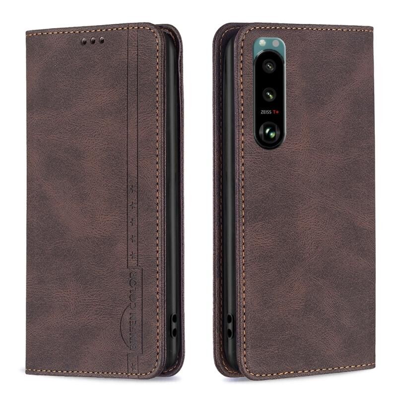 Για Sony Xperia 5 III Μαγνητικό RFID μπλοκάρισμα Anti-Theft Δερμάτινη θήκη τηλεφώνου (καφέ)