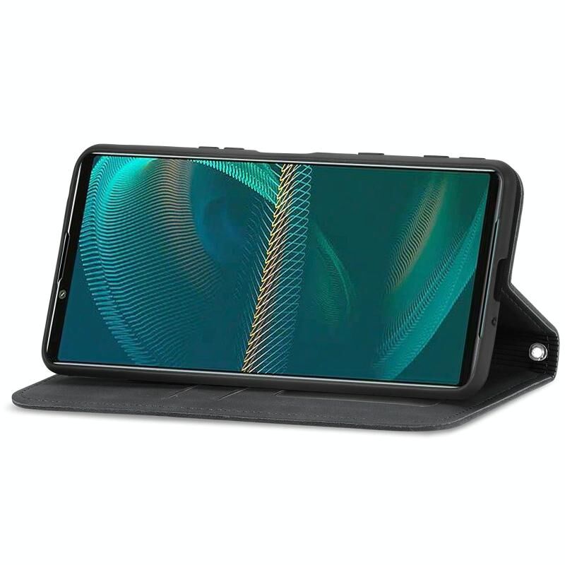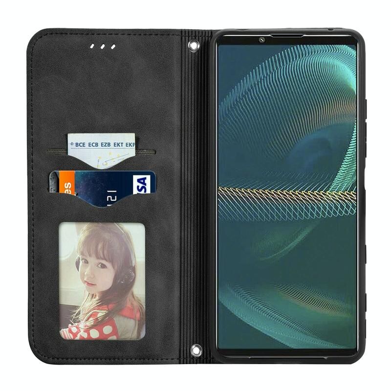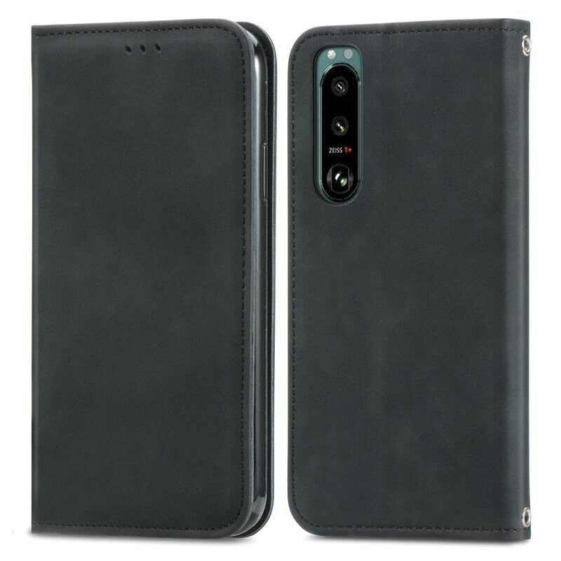 Για το Sony Xperia 5 III Retro Skin Feel Business Μαγνητική οριζόντια Flip δερμάτινη θήκη με θήκη για κάρτες & υποδοχές για κάρτες & πορτοφόλι & πλαίσιο φωτογραφιών (Μαύρο)