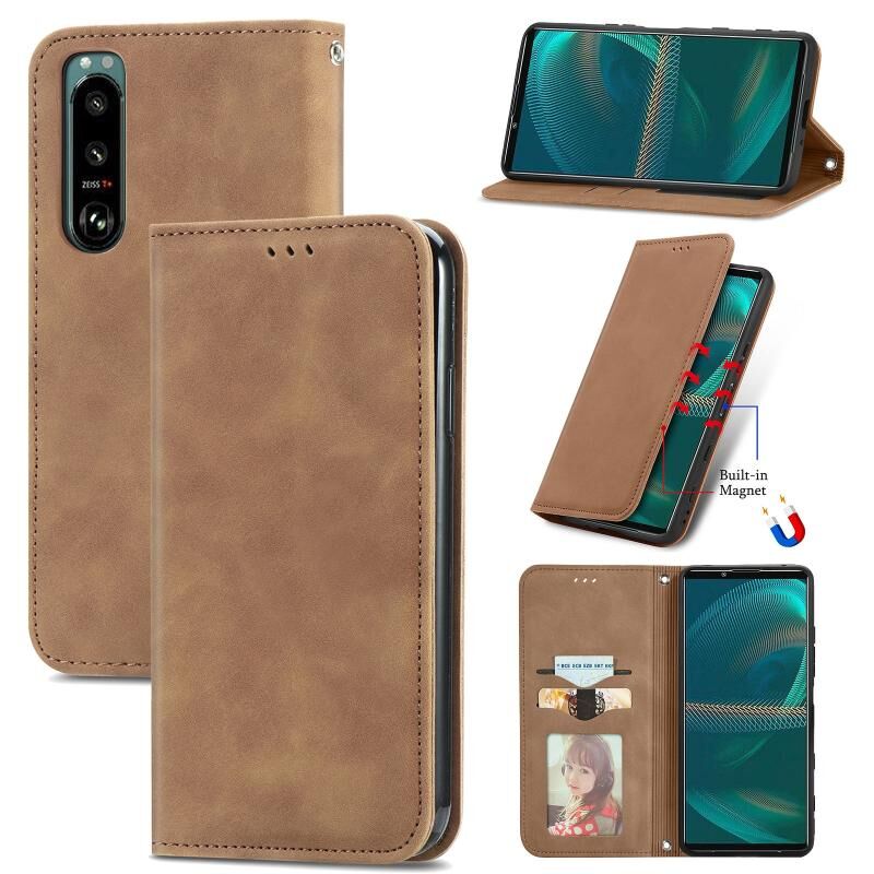 Για Sony Xperia 5 III Retro Skin Feel Business μαγνητική οριζόντια Flip δερμάτινη θήκη με θήκη & υποδοχές καρτών & πορτοφόλι & κορνίζα φωτογραφιών (καφέ)