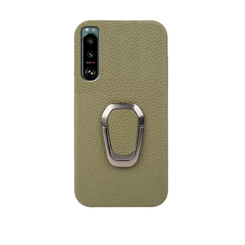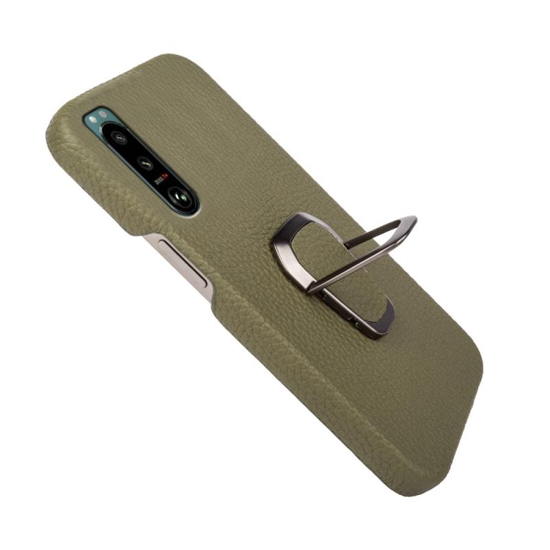 For Sony Xperia 5 III Ring Holder Litchi Texture Genuine Leather Phone Case(Green)